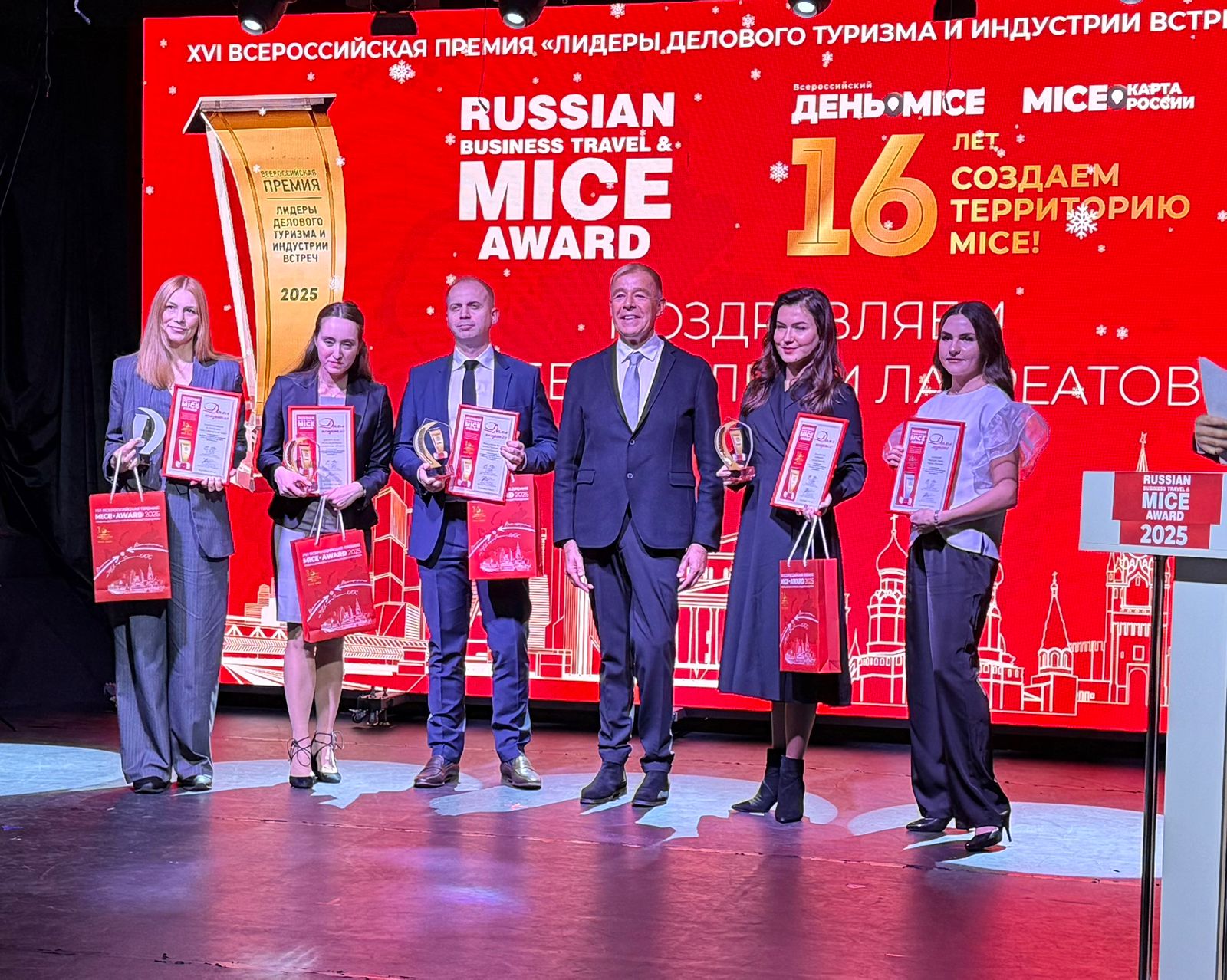 В Москве состоялась 16-я церемония вручения наград «Лидеры делового туризма и индустрии встреч» (Russian Business Travel&MICE Award). Оригинальными статуэтками авторского дизайна были отмечены победители в 16-ти номинациях, представляющих различные сегменты рынка MICE и бизнес-туризма: конгрессно-выставочные центры; региональные офисы по развитию территорий; конвеншен-бюро; отели и рестораны; альтернативные площадки для мероприятий: спортивные и промышленные объекты, учреждения культуры и музеи, винодельческие хозяйства; всесезонные курорты; агентства делового туризма и компании-организаторы конференций и инсентив-программ. В этом году борьбу за престижную награду профессиональную награду вели 415 ведущих игроков российского рынка MICE и делового туризма из всех 8 федеральных округов, а также компании из стран ЕАЭС – Республики Беларусь, Армении, Казахстана, Грузии и Азербайджана.